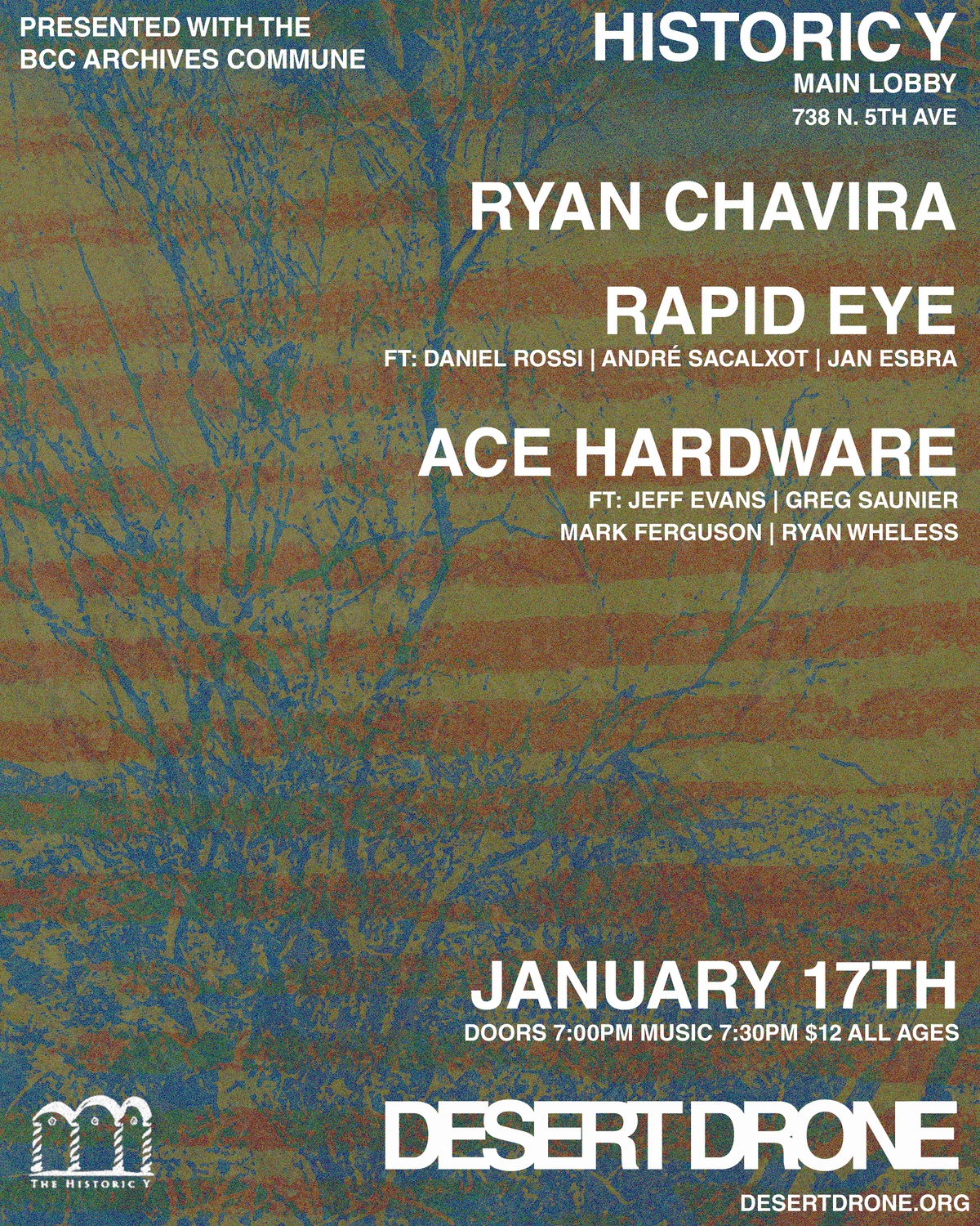 Experimental NYC jazz trio Rapid Eye (@daniel.k.rossi @andresacalxot @jan.esbra ) in Tucson January 17th at The Historic Y Main Lobby. They'll be joined Tucson supergroup Ace Hardware (@jeffreygordonevans @eternalwheless @greg.saucier @markfergustuff ) and Ryan Chavira.