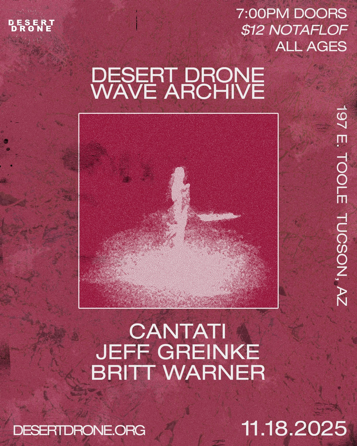 Tuesday, November 18th at Wave Archive we have CANTATI, Britt Warner, and Jeff Greinke performing at Desert Drone for a night of experimental ambient vibes.