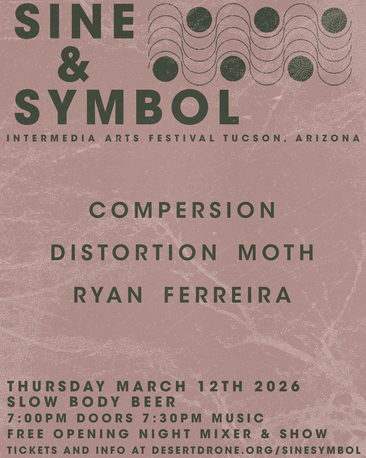 Thursday March 12th at Slow Body Beer: Compersion / Ryan Ferreira / Distortion Moth for the Sine & Symbol intermedia arts festival. Advance festival pass and full lineups at desertdrone.org/sinesymbol
